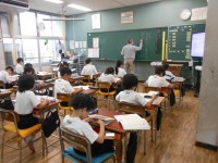 3組は、英語。ゲームをしながら動物の名前を覚えていました。