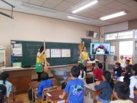 1年生が学校図書館へ行き、本の貸し出しの仕方を司書の先生に教えてもらいました。好きな本を3冊選び、自分のカードを取って列に並びます。スムーズに手続きできるように、本の向きをそろえたり、借りるのか返すのかを言って本を出すことを教えてもらったりしました。