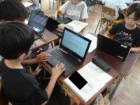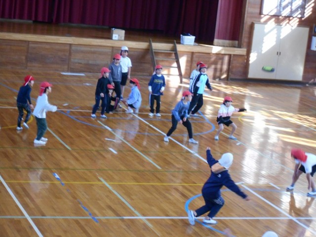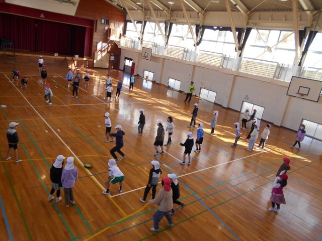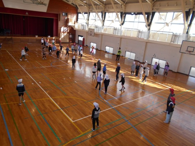 3年生は、体育館で、学年合同でドッジビーをしていました。2つのドッジビーが行き来して、緊張感がありとても楽しそうでした。