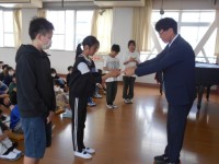 校長先生からは、「挑戦」の気持ちを持って入学してほしい。三年間はあっという間。話して伝える、書いて伝える力を身につけて、授業をがんばってほしいとお話がありました。