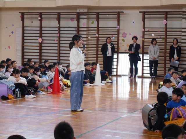 7日午後、令和8年度着任式が行われました。本校では、10名の教職員が着任しました。転任職員紹介の後、児童代表の6年生が「お迎えの言葉」を堂々と述べました。
