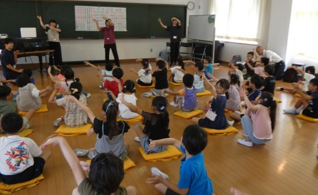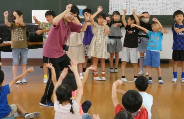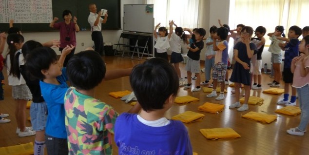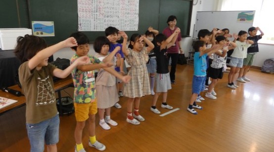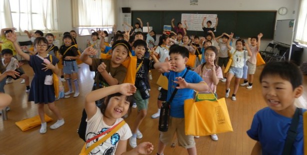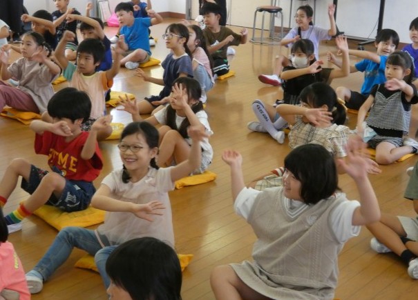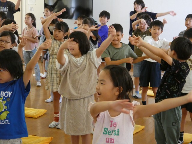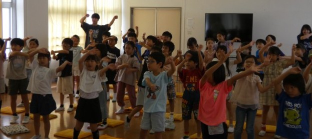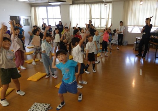 まずは、声出しをしたり、11月の「本公演」で 歌う歌や掛け声、踊りの練習をしたりしていきました。紹介された曲を、子供たちは張りきって歌い、踊ることができました。