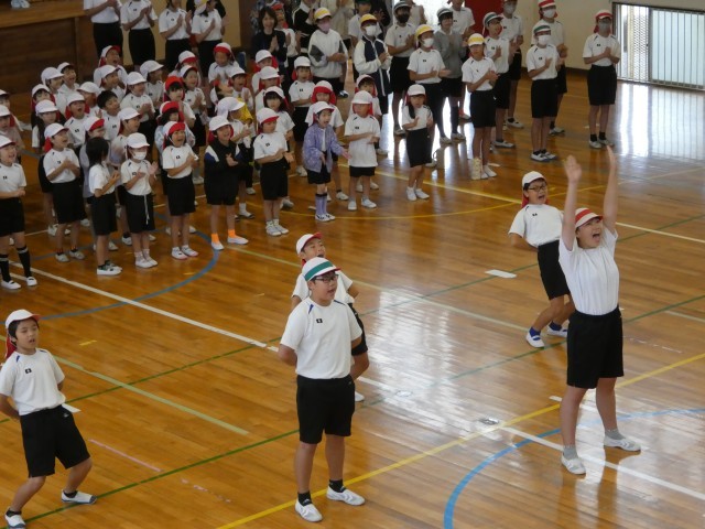 昼休みに応援練習を行いました。今日は、3・4年生に応援団が教えに行きました。初回でしたが、赤組も白組もよく声が出ていました。
