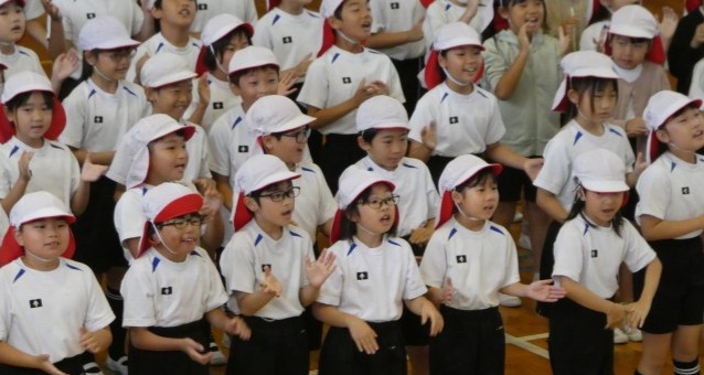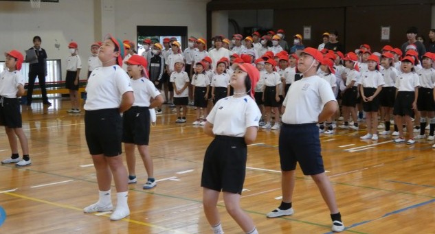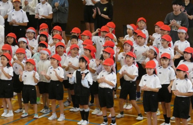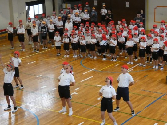 今日の昼休みは、1・2年生の応援練習でした。応援団の5・6年生も、昨日より声がよく出ていました。がんばっています。