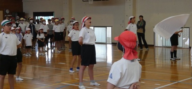 今回は、「開・閉開式」や「ラジオ体操」等の練習をしました。