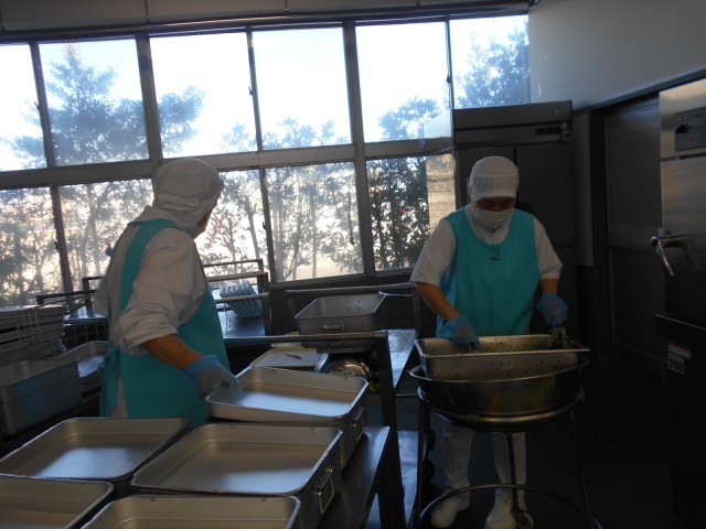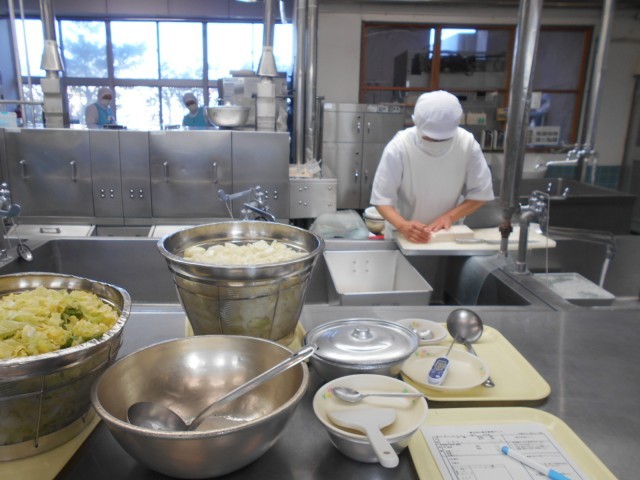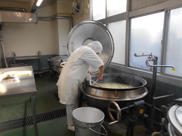 本日給食室の視察があり、同行して調理の様子を見せていただきました。大きな釜を使って、全校分の給食を限られた人数の調理員さんが手際よく、心を込めて作っている姿がとても印象的でした。今日もおいしい給食をいただきます!