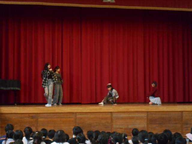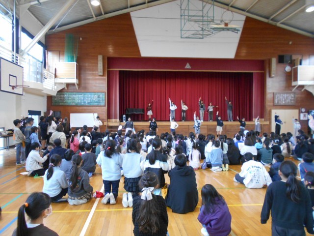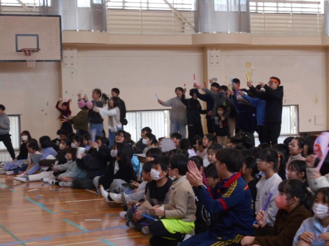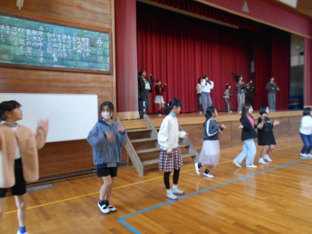 昼休みに、ダンスクラブの発表会が体育館で行われ、たくさんの子供たちが集まりました。ノリノリのダンスに、見ている応援団も盛り上がり、とても楽しい一時でした。