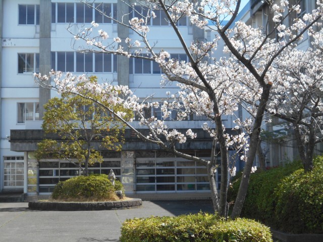 校舎周りの桜が見頃を迎えています。来週の入学式・始業式までは、この状態のまま桜がもってほしいと願っています。