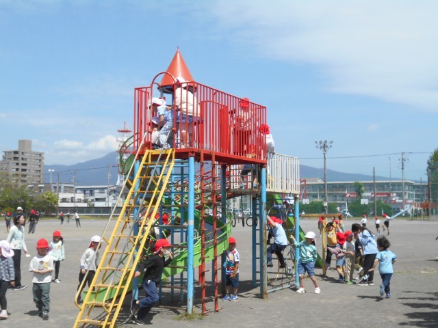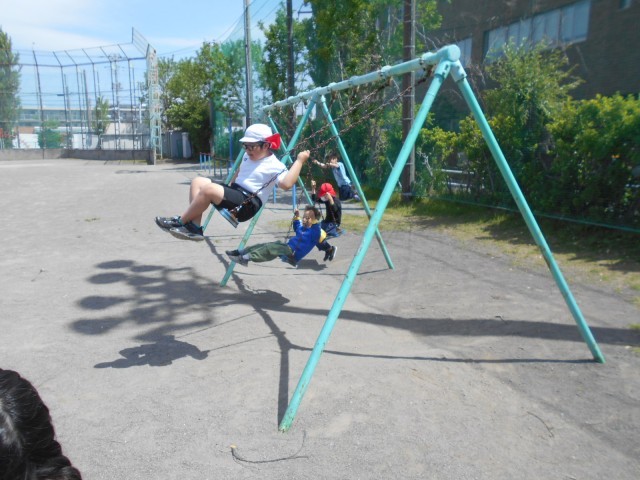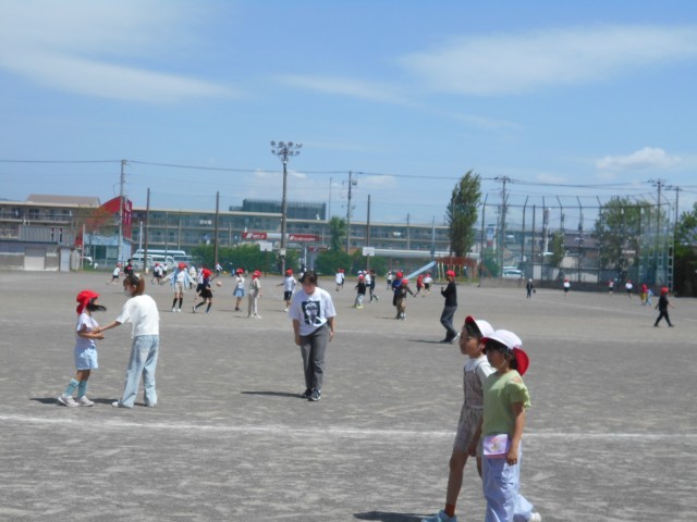 休み時間の様子です。グラウンドでは子供たちが元気に遊んでいました。