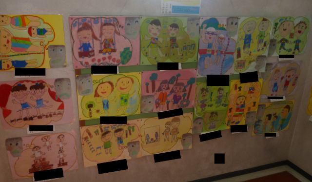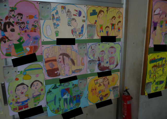 作品が仕上がり、廊下や階段などに 掲示しました。