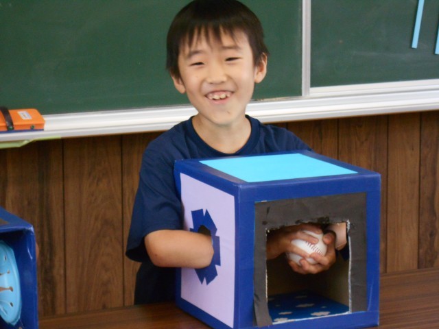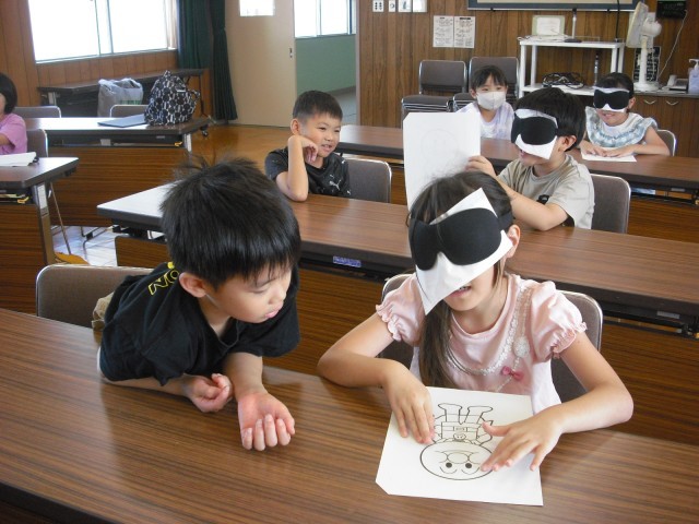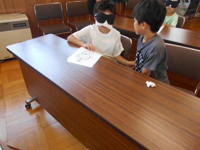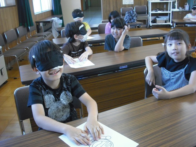 視覚特別支援学校に行き、アイマスクやブラックボックスを使って様々な体験をしました。