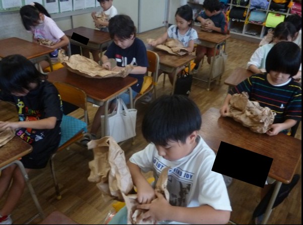 • 9/22(月) 2年生 紙を くしゃくしゃにすると?