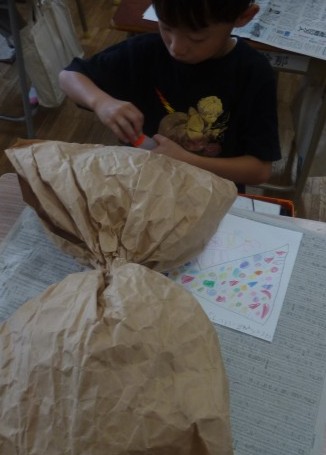 次回は、「楽しかったよ!わくわくしたよ!」の絵の具を使った色塗りと仕上げを、来週からは、「くしゃくしゃ ぎゅっ」の人形づくりから進めていきます。