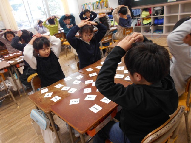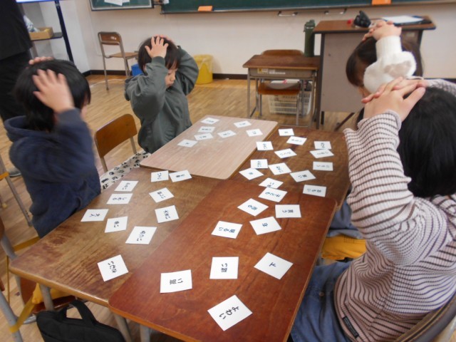 反対の意味を持つ言葉について学習しました。カルタを使って理解を深めました。
