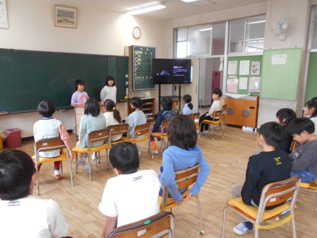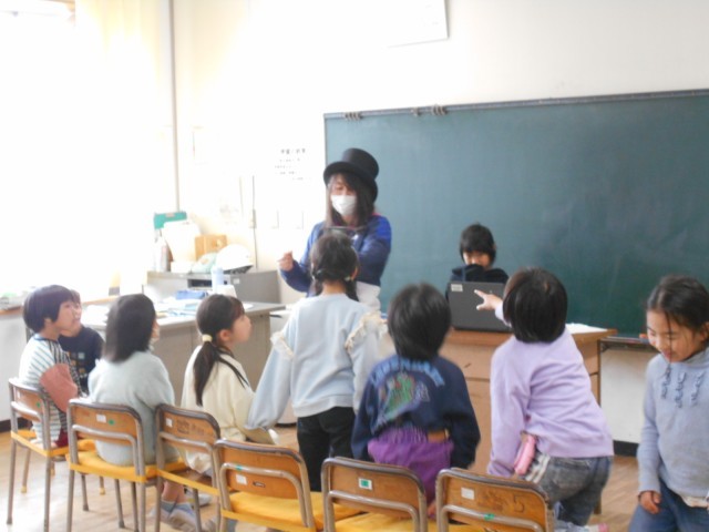 学年末のお楽しみ会で、外でみんなで遊んだり、中で出し物を出し合ったりしていました。先生からのマジックショーもあり盛り上がっていました。