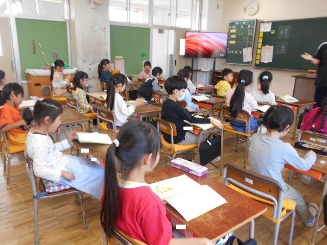 2年生の学習の様子です。先週末より本格的に学習がスタートしていますが、みんな丁寧に学習を進めています。国語では新出漢字の練習をし、図工では教科担任が学習を支援しました。