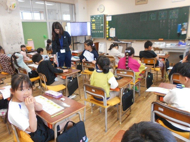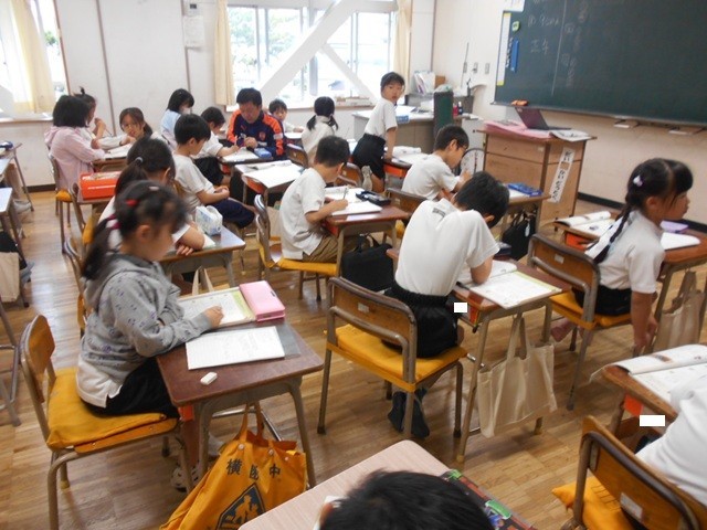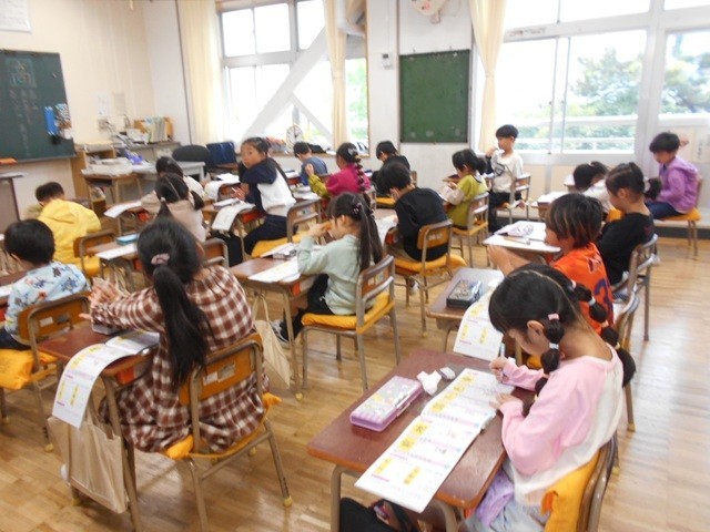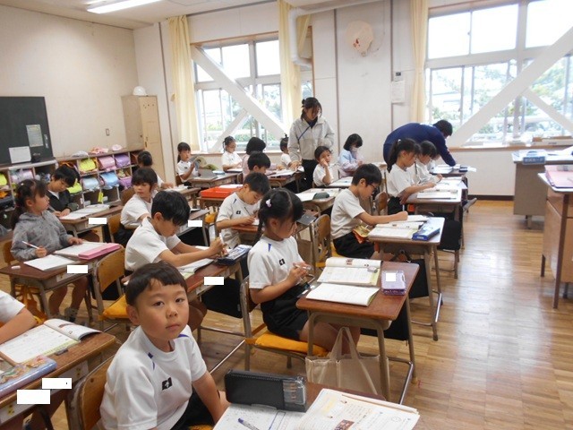 2年生の学習の様子です。両クラスとも落ち着いた雰囲気の中、活動を進めていました。友達同士で教え合う姿も見られました。