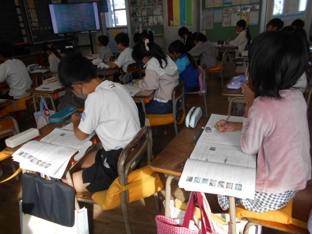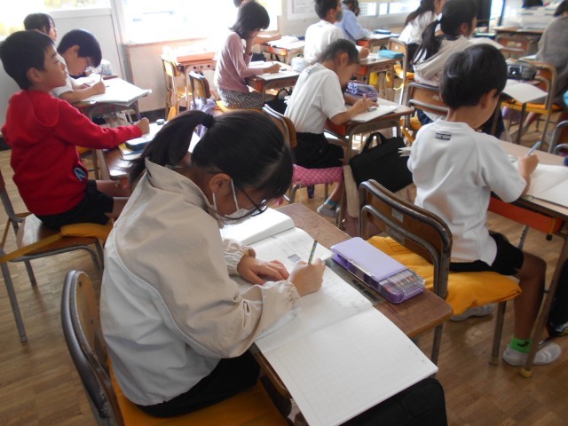 席書コンクールに向けて、「左右」の練習をしました。集中して書いていました。