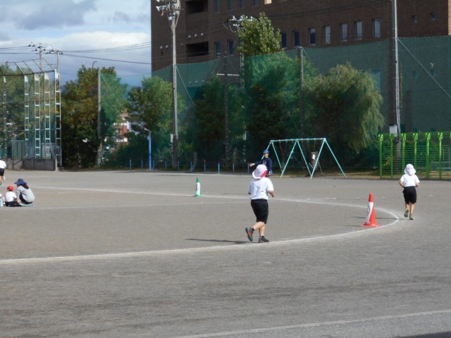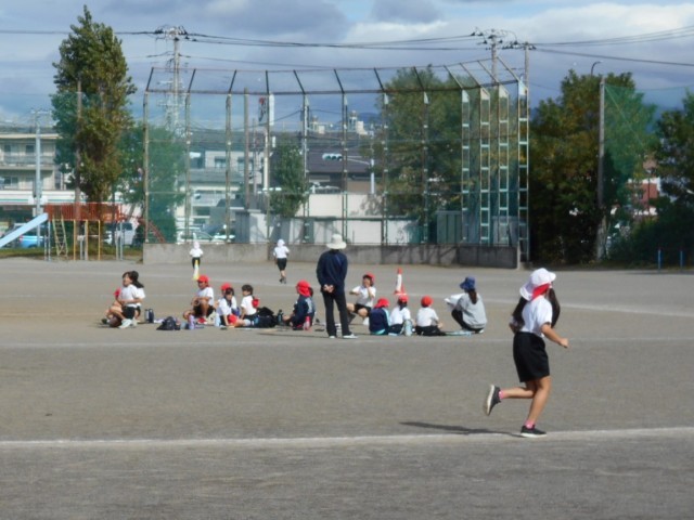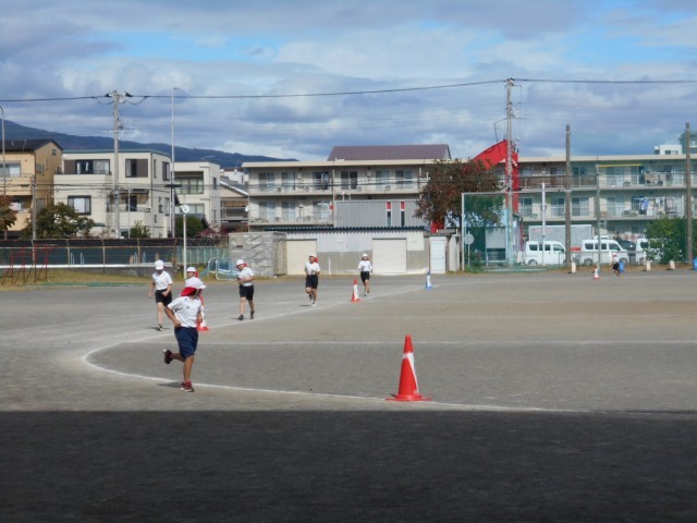 かけ足運動の学習です。2グループに分かれて挑戦しています。4年生は、5分間です。自分が走らないときには、友達に温かい声援を送っていました。