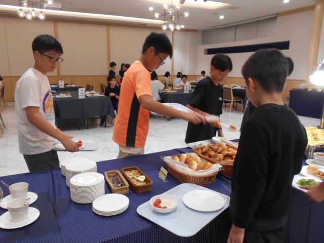 2日目も、晴天。朝食をたくさん食べた後、ホテルの出発式を行いスタッフさんへ感謝の気持ちを伝えました。