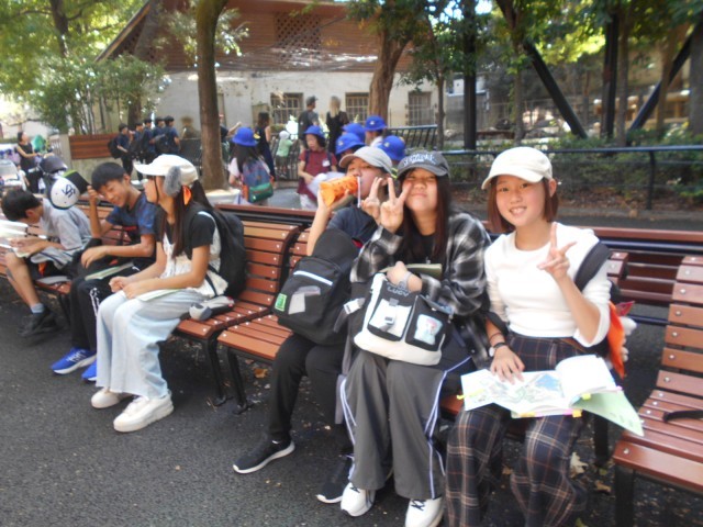 その後、真夏日が戻った陽気に暑さ対策をしながら、上野恩賜公園で計画に沿ってグループ活動を行いました。