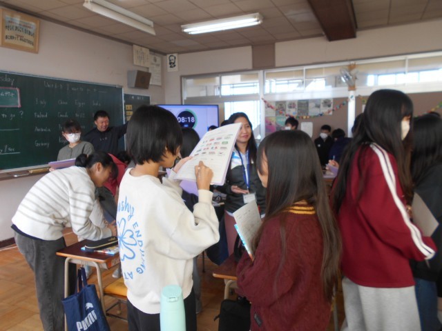 どこの国に行きたいのか、その理由はなぜか、お互いにインタビューし合いました。