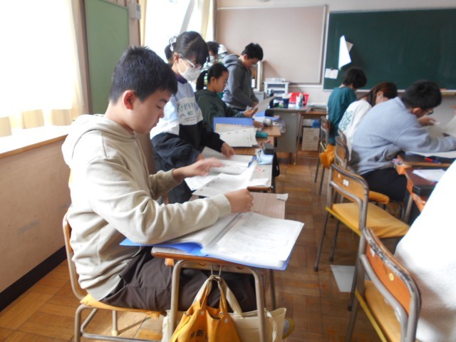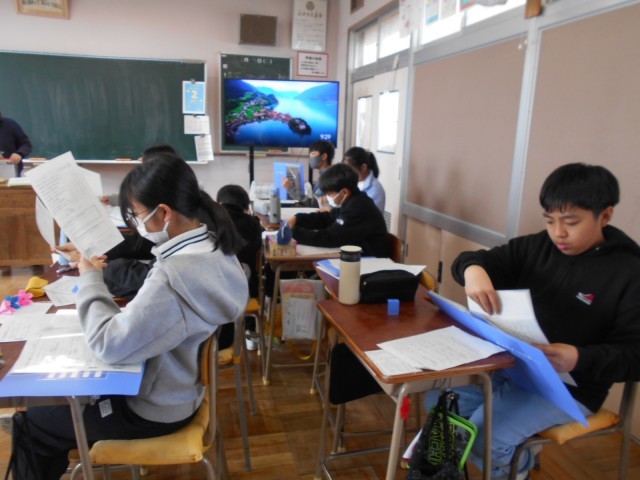 2,3組はキャリアパスポートの整理をしていました。キャリアパスポートは、進学先の中学校へと引き継がれます。