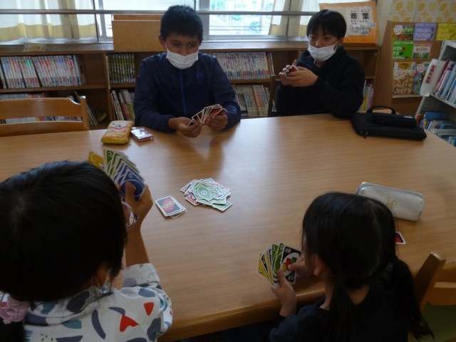 「将棋・オセロ・カードゲームクラブ」では、グループで決めたゲームを、異学年の子供たち同士で関わりながら楽しんだり、今までの活動の振り返りをしたりすることができました。