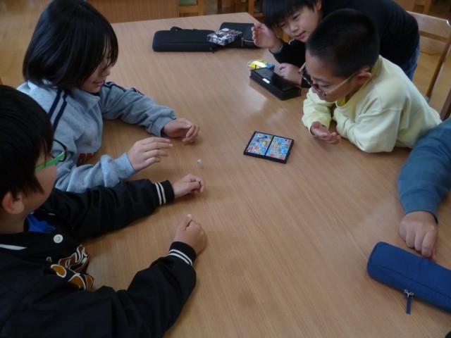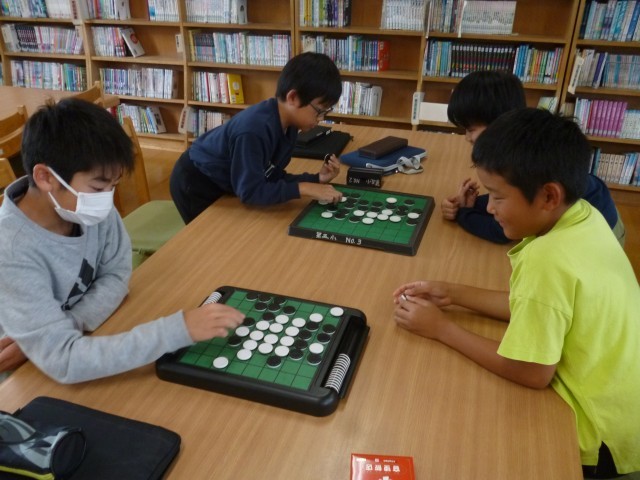 高学年の子供たちも、はり切って 活動を進めていました。オセロ・将棋・カードゲームクラブでは、3年生と一緒にゲームを楽しむ子たちもいました。
