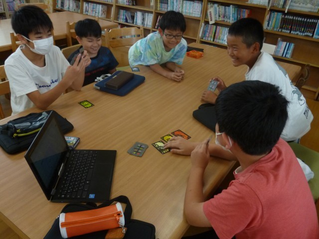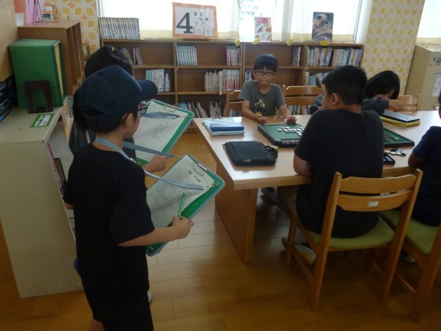 高学年の子供たちも、はり切って 活動を進めていました。オセロ・将棋・カードゲームクラブでは、3年生と一緒にゲームを楽しむ子たちもいました。