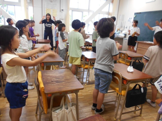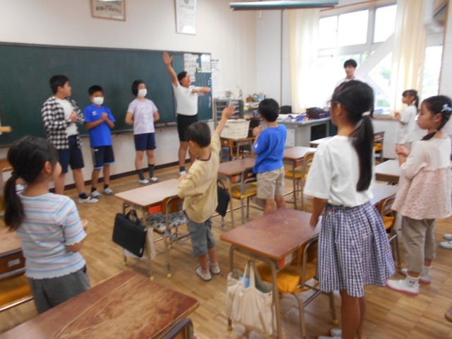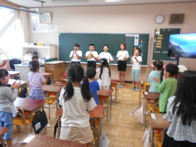 今日の昼休みは、1・2年生の応援練習でした。応援団の5・6年生も、昨日より声がよく出ていました。がんばっています。