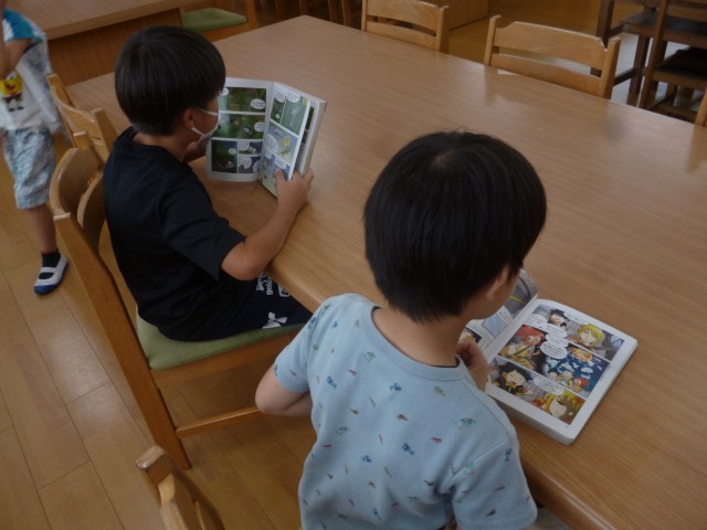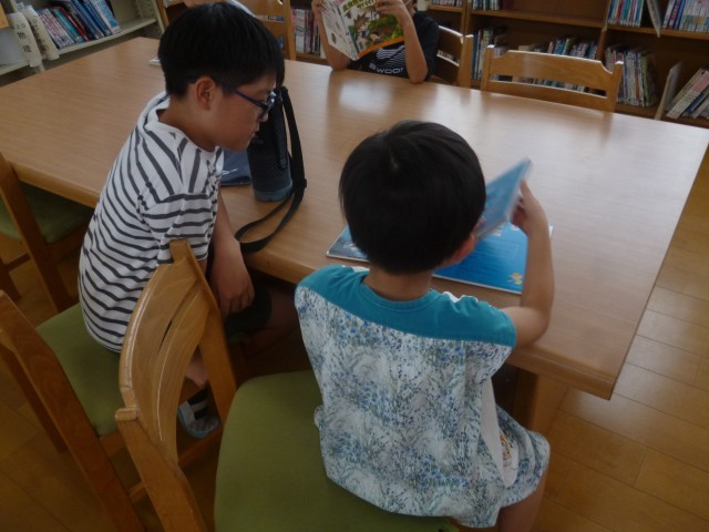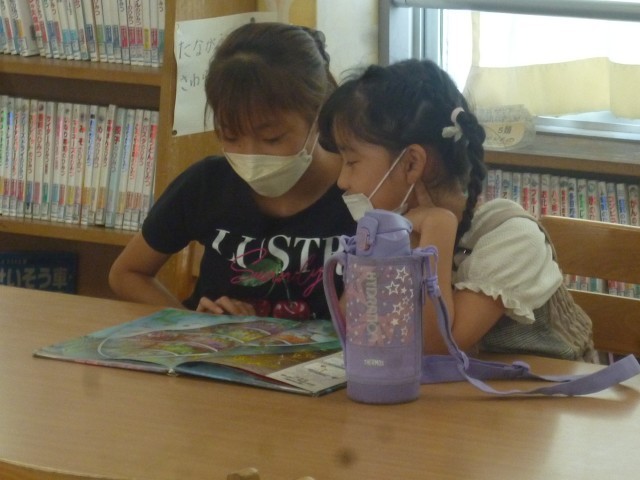 図書館では、本を借りたり、一緒に読んだりと、とてもほのぼのとした時間が流れていました。