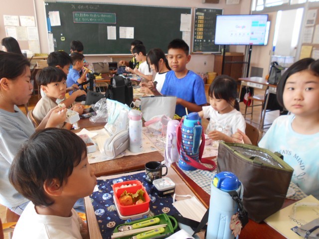 今日の五小っ子活動は、ペア活動でした。ペア学年同士でお弁当を食べ、昼休みに何をして遊ぶか相談していました。