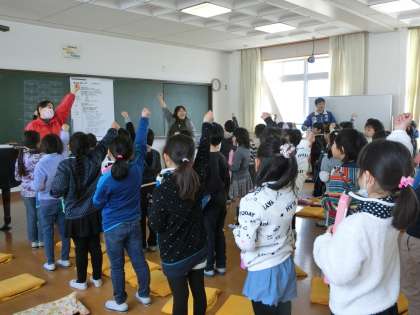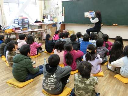なかよしの教室からは笑い声が響いてきました。お話を聞きながらクイズに答えていました。