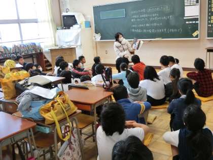 3年生の教室です。3年生は集中してお話を聞いていました。お話の世界に入り込んでいるようでした。