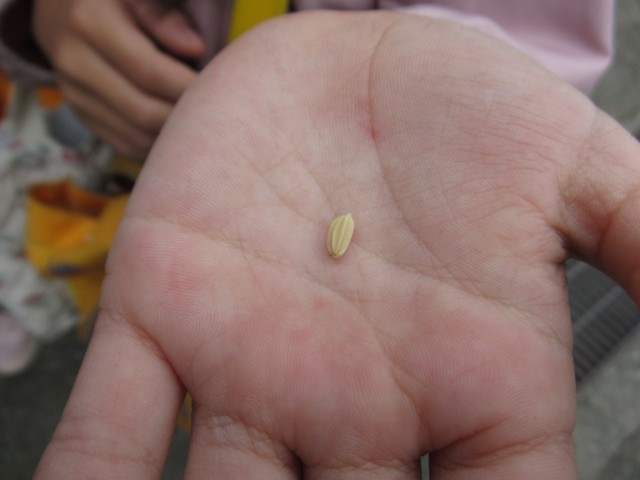 家でお米から育てた稲から収穫したお米を持参して見せてくれました。すごい!!