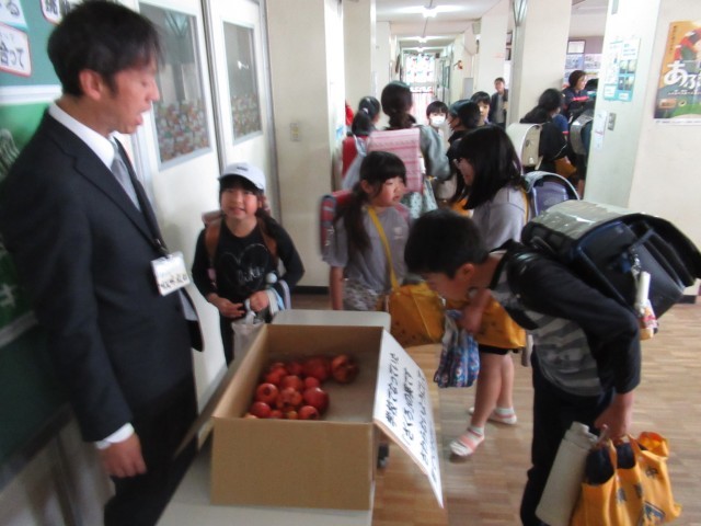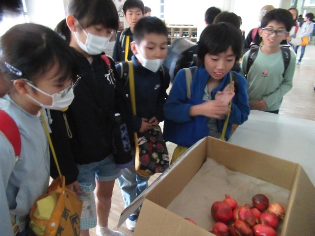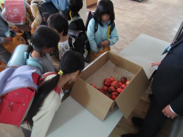 子どもたちに見せるために、保護者の有志の方々が集まり学校のザクロを収穫してくださいました。