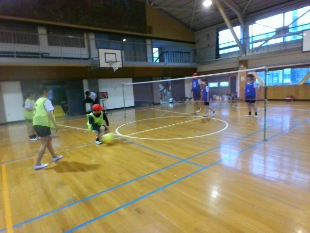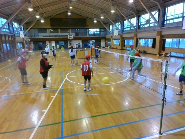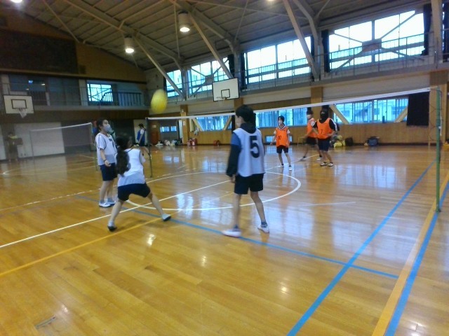体育館では、バレーの授業をしています。