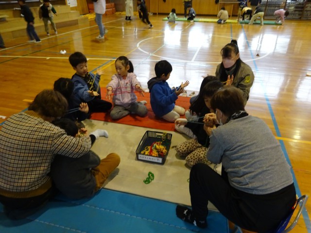 めんこ・お手玉・紙ひこうき・こま・あやとり・紙とんぼ・けん玉の各コーナーに分かれて体験をしました。