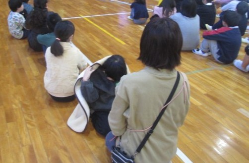 会場は門池小学校です。開北小学校の児童はバスを使い、門池小学校まで行くことができました。