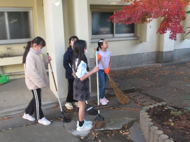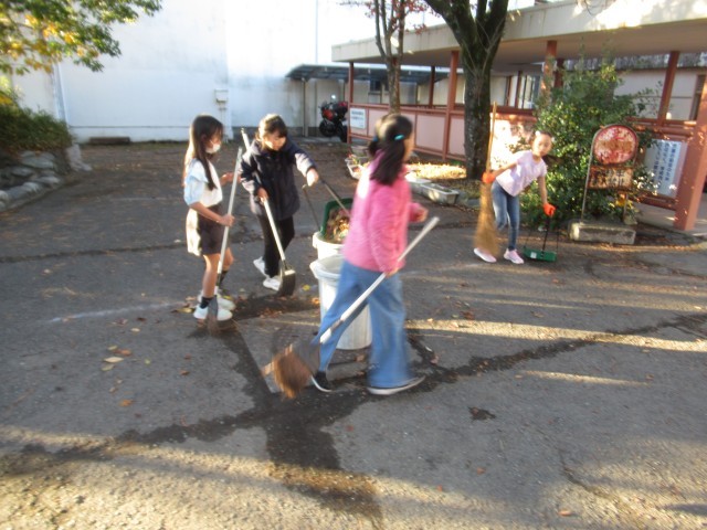 大勢のボランティアが自発的に落ち葉掃きをしてくれています。ありがたいです。