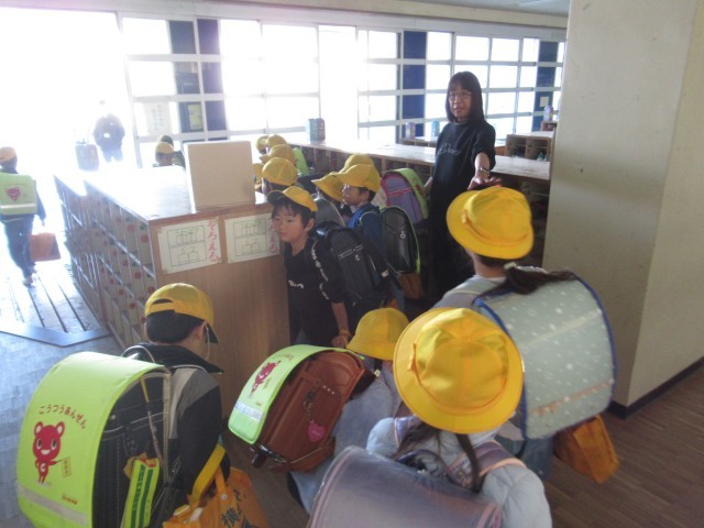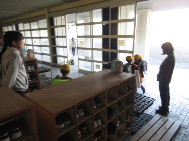 児童玄関で先生方とお話を楽しんだ後、元気にあいさつをして玄関を出て行きます。
