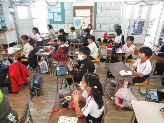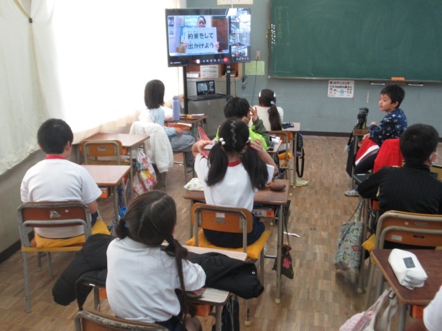 交通安全指導員さんをお迎えし、オンラインでつないで交通安全にまつわるお話をしていただきました。登下校が安全にできることを願っています。