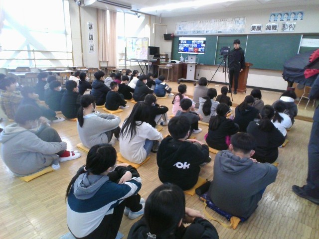 6年生は、学校を代表して、音楽室から始業式に参加しました。3学期の抱負を語る代表児童は、原稿を読むのではなく、一生懸命に思いを語ってくれました。