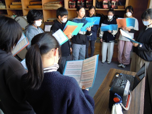 ソプラノとアルトに分かれてパート練習をしています。二つのパートが重なったとき、どのような響きが生まれるのか。子供たち自身も素敵な響きを体感できれば素晴らしいです。
