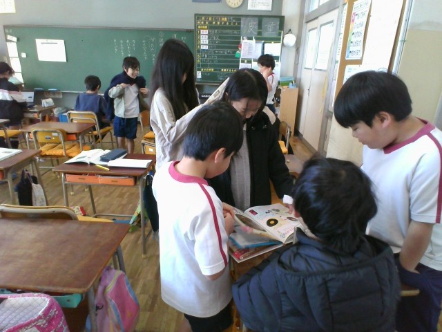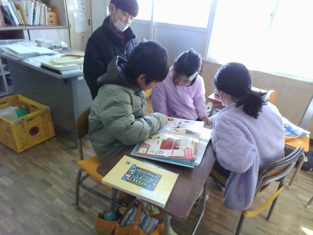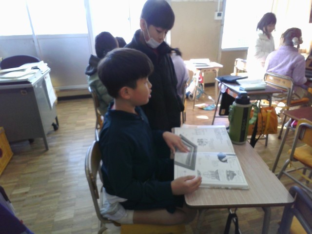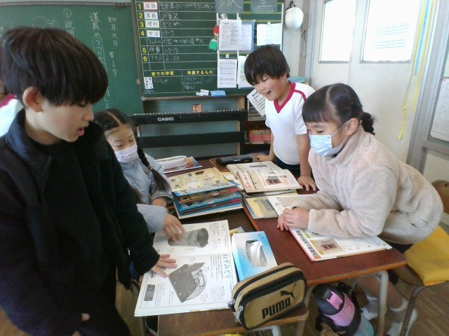 国語で「道具のうつりかわりを説明しよう」を学習しています。沼津市立図書館から本を借りていただき、一人一冊見ながら調べることができています。グループで何の道具を説明するのか話し合っています。