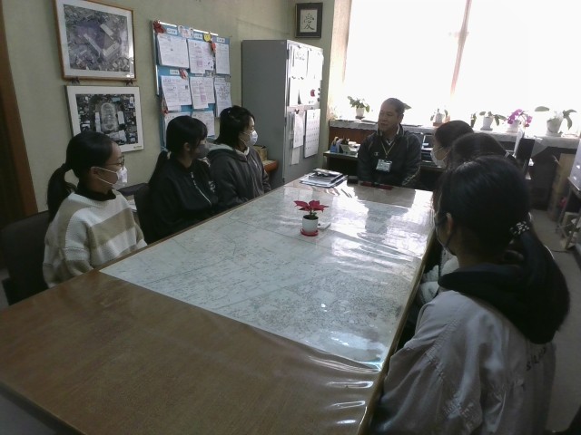 校長室にて、計画委員会の6年生が校長先生と振り返りを行っていました。