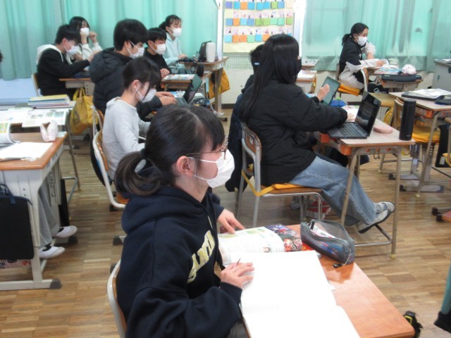 グループごと調べた内容についてクイズ形式で発表しています。