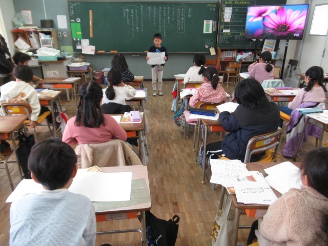 「お手紙」に出てくるかえる達の友情について考えています。また好きな場面を発表しています。