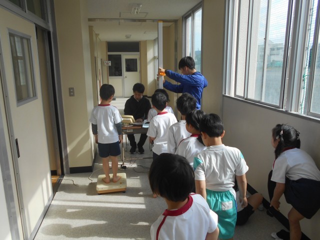 2年生が身体測定を行っていました。静かに順番を待つことができています。